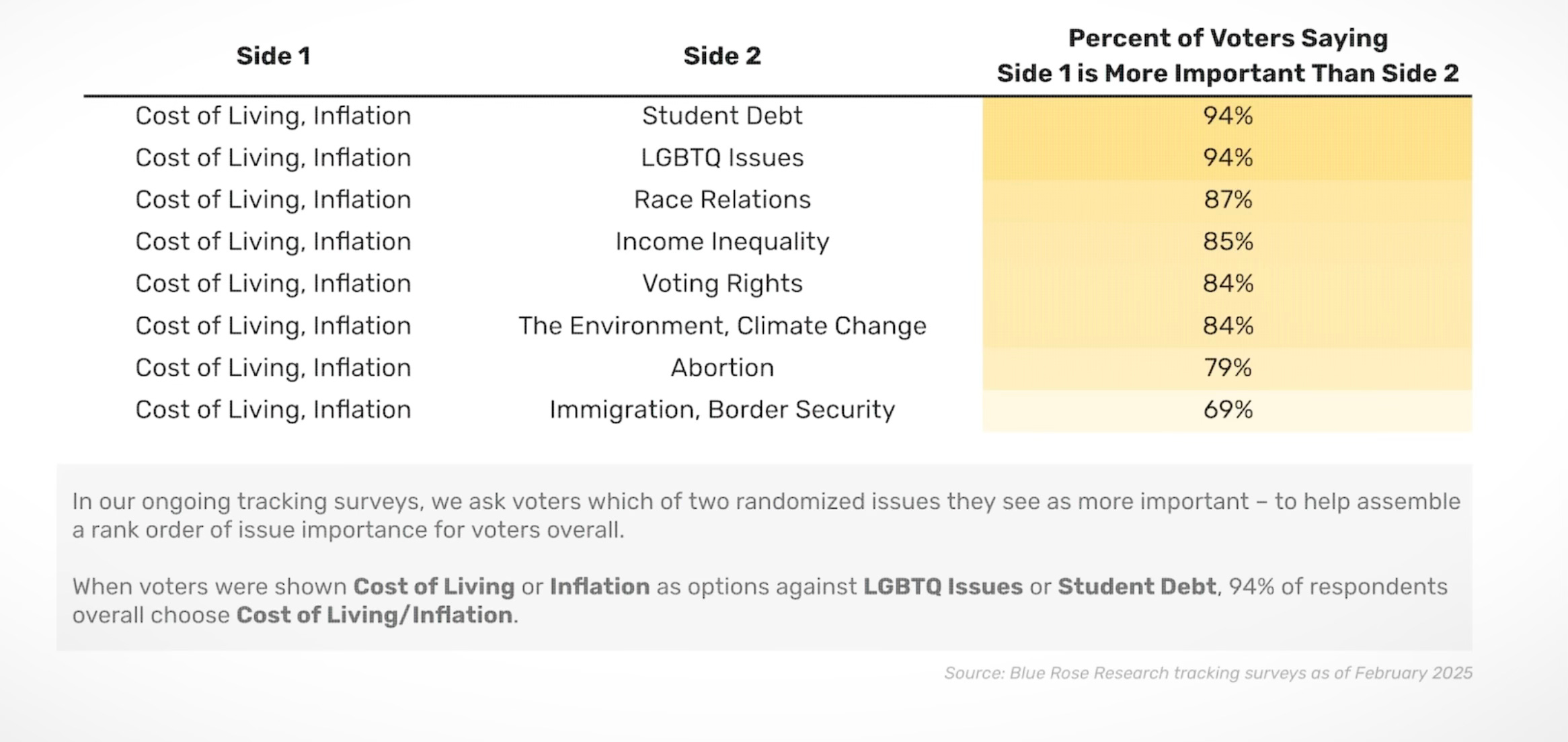 La inflación y el costo de vida superó ampliamente a todos los demás temas (incluidos inmigración, aborto y democracia).