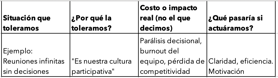 Identificar los “anticuerpos organizacionales” que se disfrazan de prudencia pero son simplemente resistencia al cambio necesario.